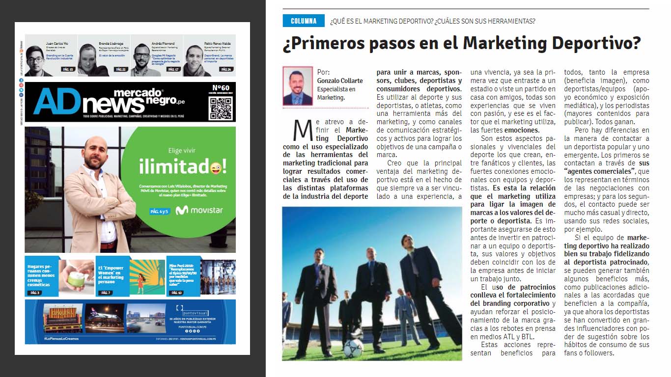 Gracias a Mercado Negro pude publicar una columna sobre Marketing Deportivo en ADnews N°60, pueden leerla en la página 24 de su publicación digital colgada en Issuu, en su web o directamente aquí:
