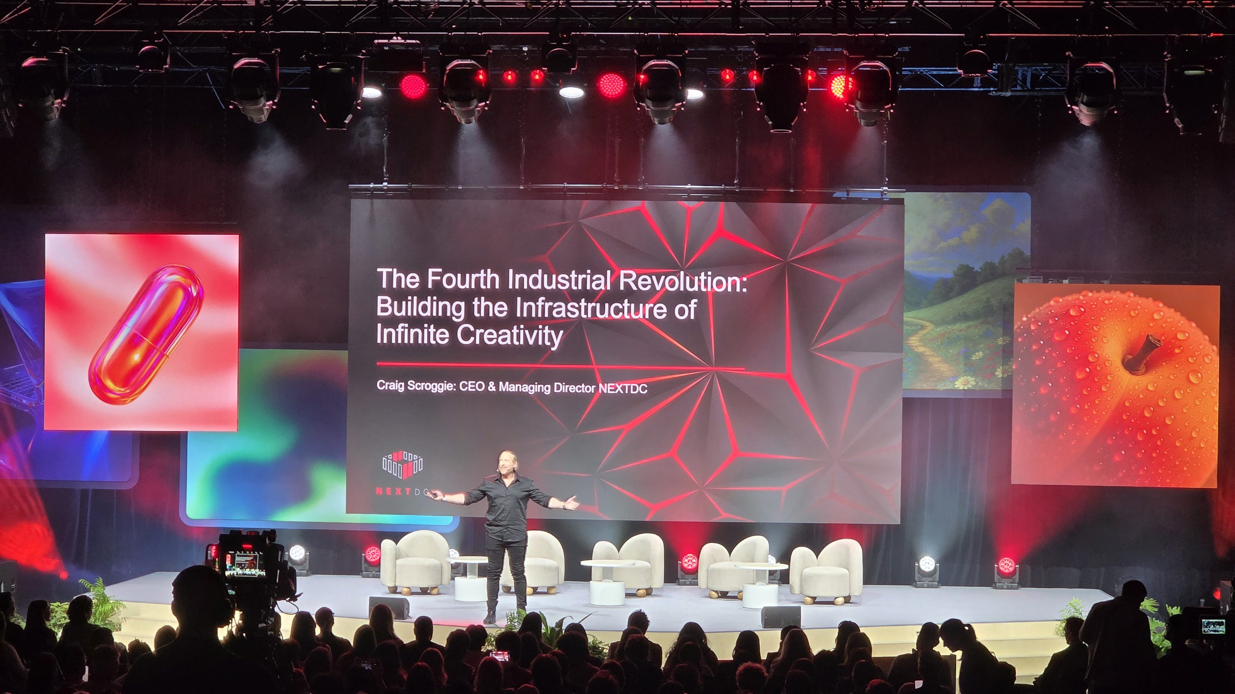 Then came Craig Scroggie, CEO and Managing Director of NEXTDC, who gave everyone a crash course in the fourth industrial revolution. He grounded the AI moment in a longer story, from Nokia bricks and BlackBerry keyboards to the iPhone and the app economy, from Moore’s Law to what he called “Huang’s Law” as we shift from CPU to GPU-driven accelerated computing.